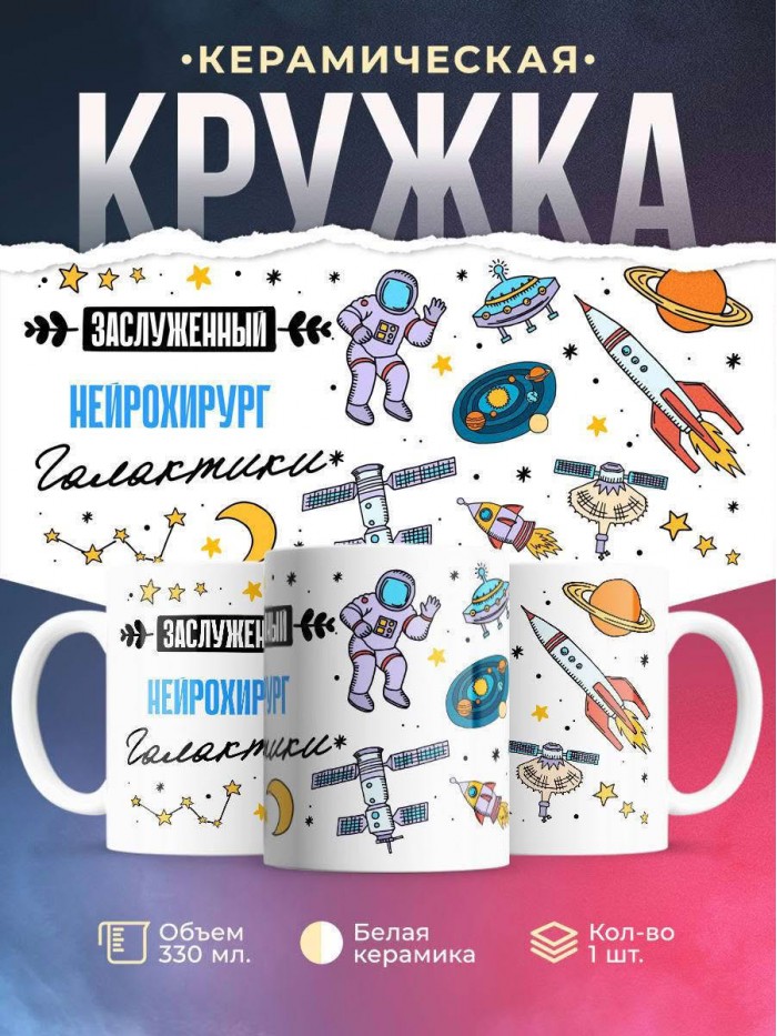 Сувенирная белая кружка с принтом "Заслуженный нейрохирург галактики" – отличный подарок родным и близким людям для любого случая. Уникальный дизайн делает ее неповторимой и привлекательной для глаз. Принты могут быть разными: от ярких креативных решений, которые идеально подойдут молодежи, до классических элегантных узоров, радующих взгляд людей любого поколения во время чаепития. Рисунок наносится с использованием специализированного оборудования, материалами, прошедшими испытания на пригодность к использованию в быту.