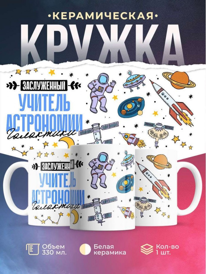Сувенирная белая кружка с принтом "Заслуженный учитель астрономии галактики" – отличный подарок родным и близким людям для любого случая. Уникальный дизайн делает ее неповторимой и привлекательной для глаз. Принты могут быть разными: от ярких креативных решений, которые идеально подойдут молодежи, до классических элегантных узоров, радующих взгляд людей любого поколения во время чаепития. Рисунок наносится с использованием специализированного оборудования, материалами, прошедшими испытания на пригодность к использованию в быту.