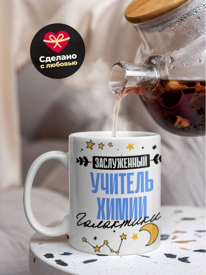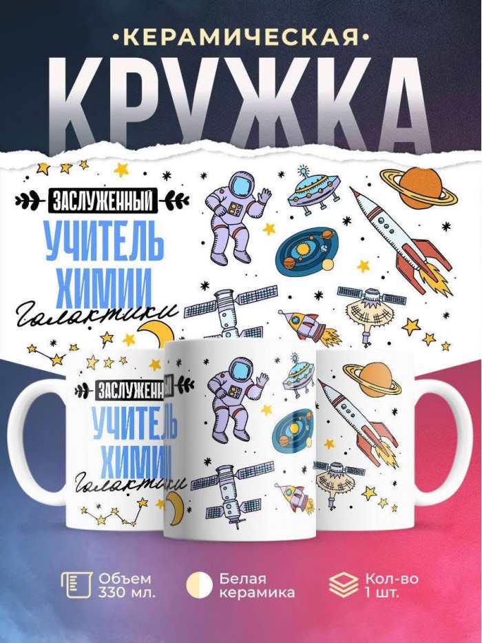 Сувенирная белая кружка с принтом "Заслуженный учитель химии галактики" – отличный подарок родным и близким людям для любого случая. Уникальный дизайн делает ее неповторимой и привлекательной для глаз. Принты могут быть разными: от ярких креативных решений, которые идеально подойдут молодежи, до классических элегантных узоров, радующих взгляд людей любого поколения во время чаепития. Рисунок наносится с использованием специализированного оборудования, материалами, прошедшими испытания на пригодность к использованию в быту.