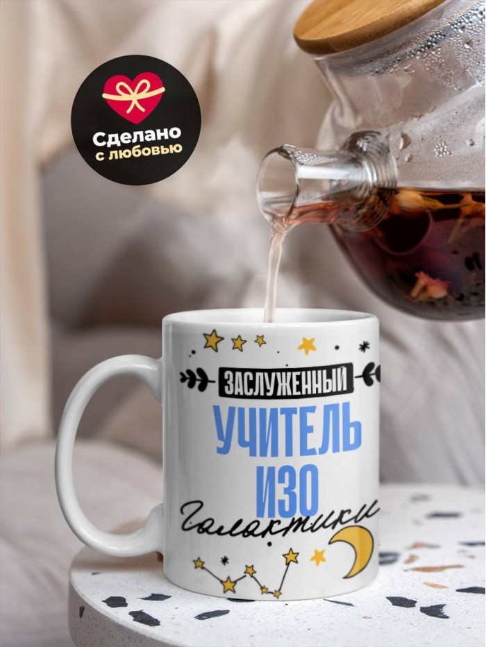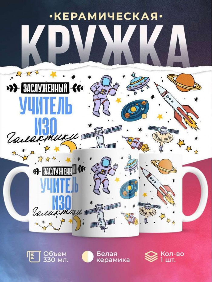 Сувенирная белая кружка с принтом "Заслуженный учитель изо галактики" – отличный подарок родным и близким людям для любого случая. Уникальный дизайн делает ее неповторимой и привлекательной для глаз. Принты могут быть разными: от ярких креативных решений, которые идеально подойдут молодежи, до классических элегантных узоров, радующих взгляд людей любого поколения во время чаепития. Рисунок наносится с использованием специализированного оборудования, материалами, прошедшими испытания на пригодность к использованию в быту.