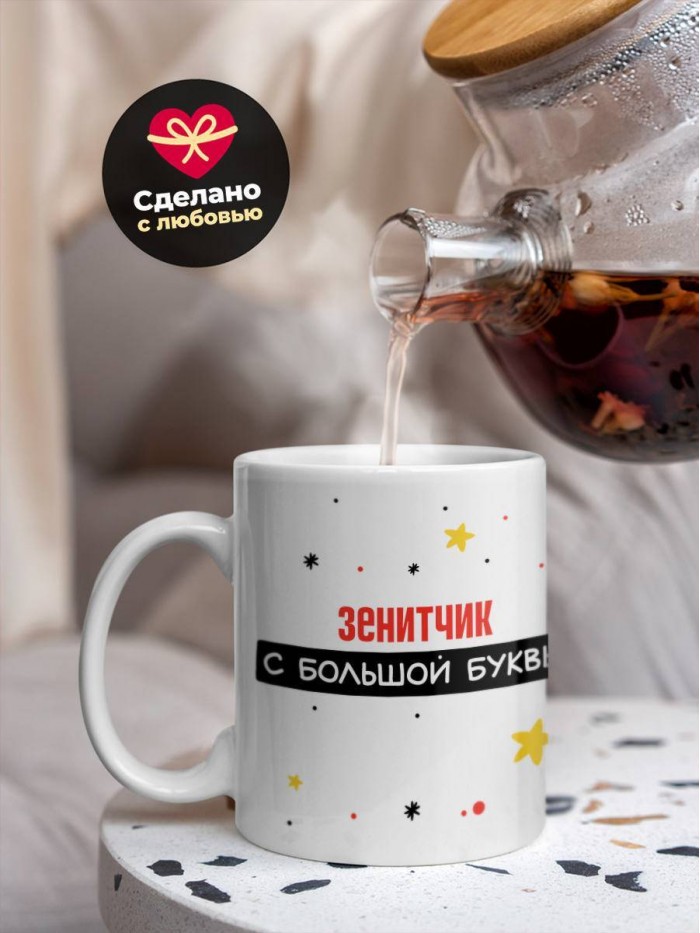 Сувенирная белая кружка с принтом "Зенитчик с большой буквы" – отличный подарок родным и близким людям для любого случая. Уникальный дизайн делает ее неповторимой и привлекательной для глаз. Принты могут быть разными: от ярких креативных решений, которые идеально подойдут молодежи, до классических элегантных узоров, радующих взгляд людей любого поколения во время чаепития. Рисунок наносится с использованием специализированного оборудования, материалами, прошедшими испытания на пригодность к использованию в быту.