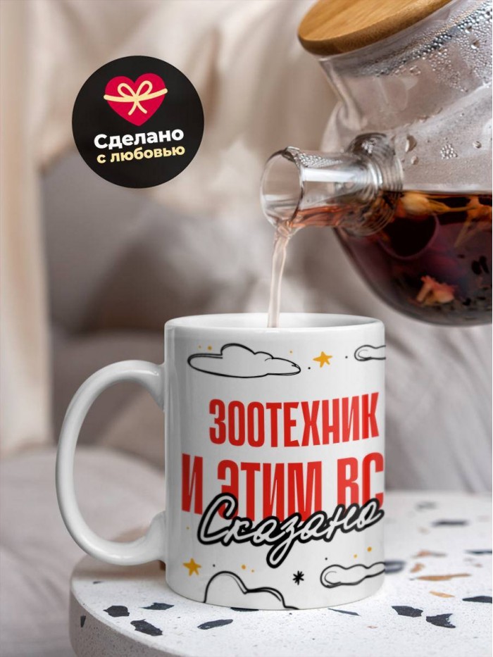 Сувенирная белая кружка с принтом "Зоотехник и этим все сказано" – отличный подарок родным и близким людям для любого случая. Уникальный дизайн делает ее неповторимой и привлекательной для глаз. Принты могут быть разными: от ярких креативных решений, которые идеально подойдут молодежи, до классических элегантных узоров, радующих взгляд людей любого поколения во время чаепития. Рисунок наносится с использованием специализированного оборудования, материалами, прошедшими испытания на пригодность к использованию в быту.