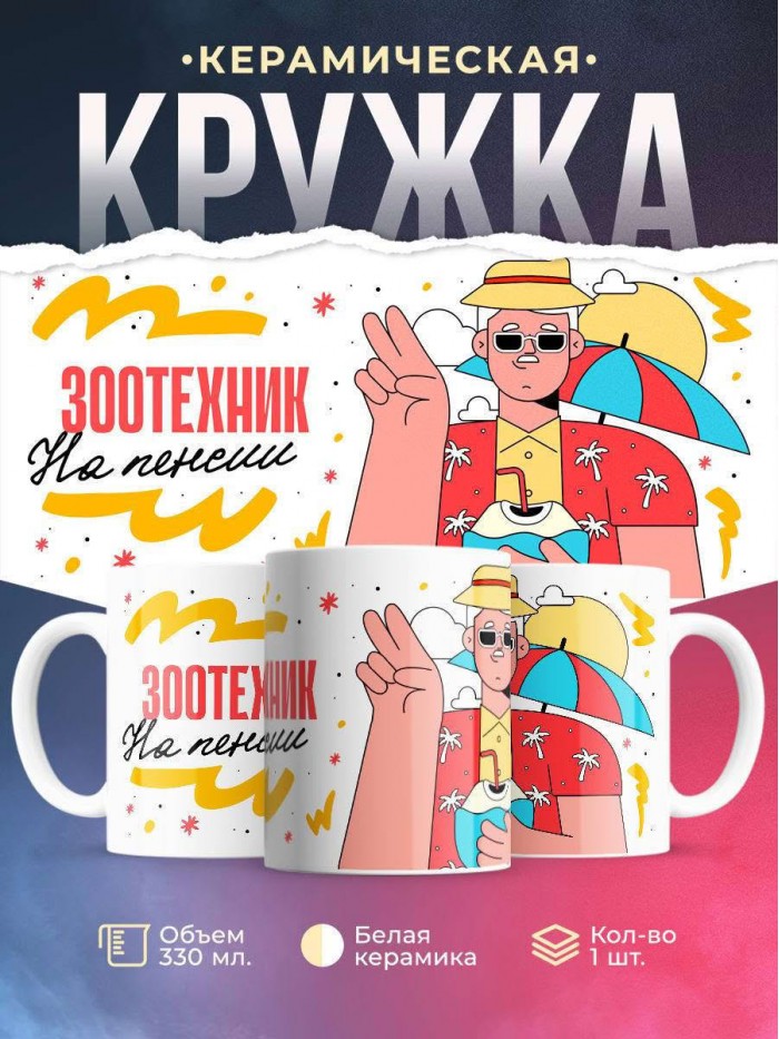 Сувенирная белая кружка с принтом "Зоотехник на пенсии" – отличный подарок родным и близким людям для любого случая. Уникальный дизайн делает ее неповторимой и привлекательной для глаз. Принты могут быть разными: от ярких креативных решений, которые идеально подойдут молодежи, до классических элегантных узоров, радующих взгляд людей любого поколения во время чаепития. Рисунок наносится с использованием специализированного оборудования, материалами, прошедшими испытания на пригодность к использованию в быту.