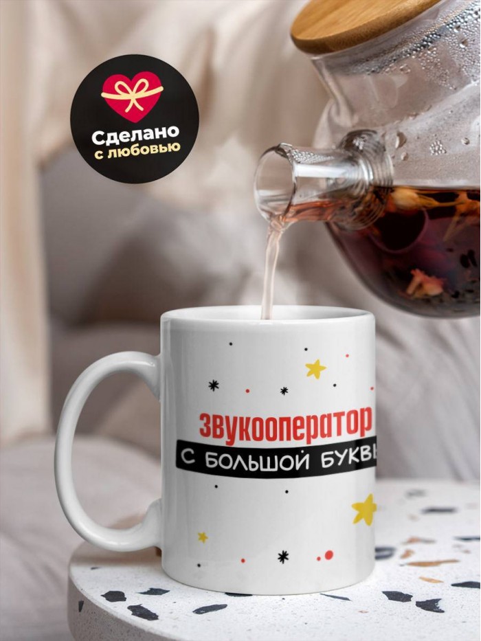 Сувенирная белая кружка с принтом "Звукооператор с большой буквы" – отличный подарок родным и близким людям для любого случая. Уникальный дизайн делает ее неповторимой и привлекательной для глаз. Принты могут быть разными: от ярких креативных решений, которые идеально подойдут молодежи, до классических элегантных узоров, радующих взгляд людей любого поколения во время чаепития. Рисунок наносится с использованием специализированного оборудования, материалами, прошедшими испытания на пригодность к использованию в быту.